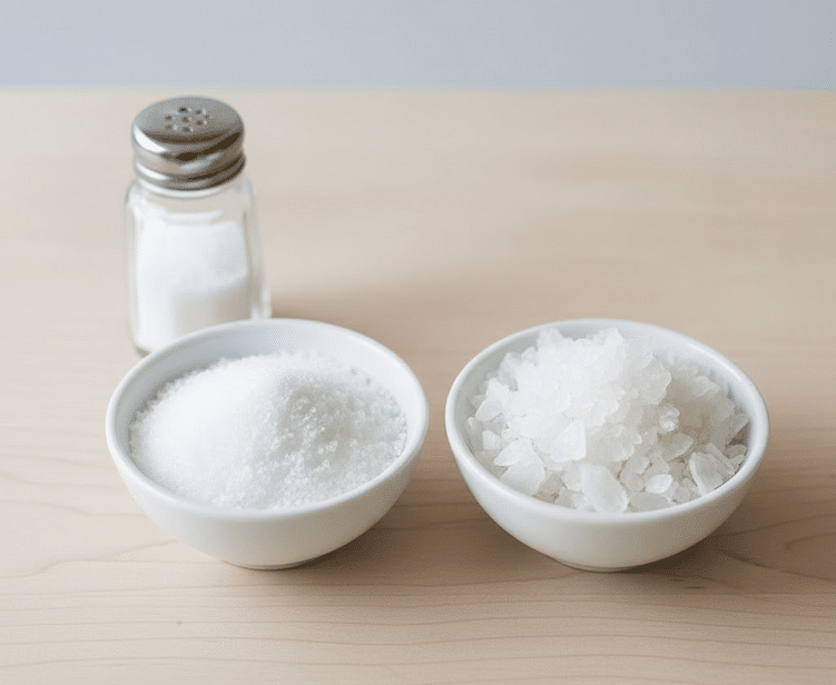 Taip, rimtai. Smulki stalo druska dažnai yra joduota, o jodas gali suteikti maistui nemalonų metalo prieskonį. Dar blogiau – į ją dedama priedų nuo sulipimo (angl. anti-caking agents) ar net dekstrozės (cukraus) jodui stabilizuoti. Jūs norite sūdyti maistą, o ne berti į jį chemijos laboratoriją.