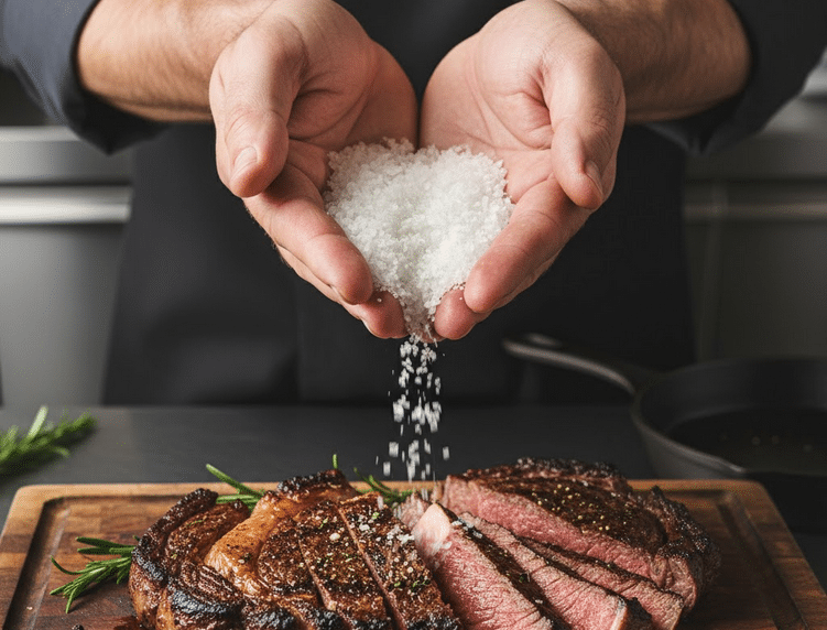 - Baltymų denatūracija: Patekus giliau, druska ardo ir atpalaiduoja baltymų grandines. Dėl to kepimo metu baltymai mažiau susitraukia ir išstumia mažiau vandens.