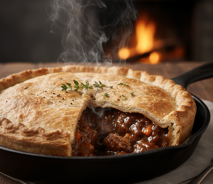 Šis patiekalas – tai nostalgija, šiluma ir saugumo jausmas. Tai maistas, kuris sušildo ne tik kūną, bet ir sielą. Gaminant jį, virtuvė prisipildo sodrių, žemiškų aromatų, kurie nukelia į jaukią senos Anglijos užeigą. Chaplinui, nuolat keliaujančiam ir gyvenančiam po padidinamuoju stiklu, šis pyragas greičiausiai buvo būdas sugrįžti namo, bent jau mintimis.