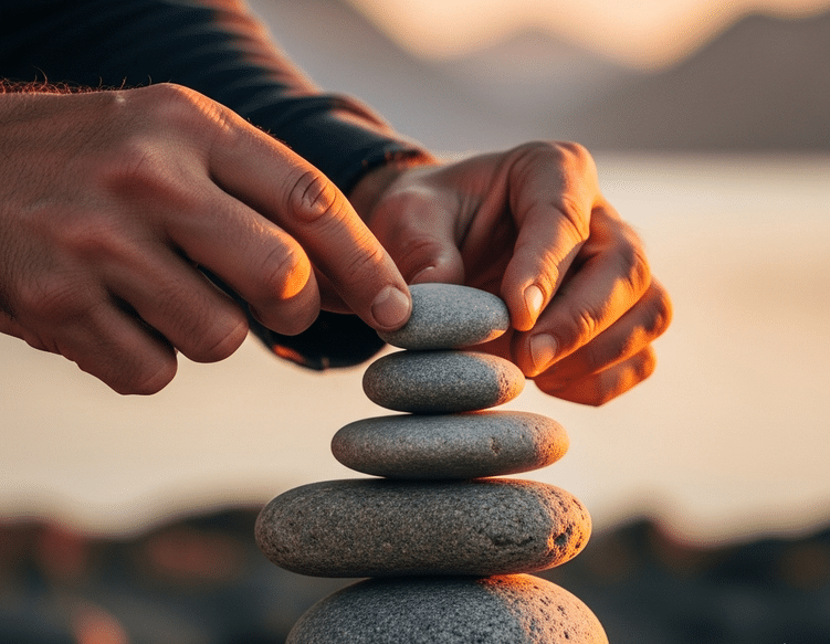 vyro rankos dėlioja akmenis